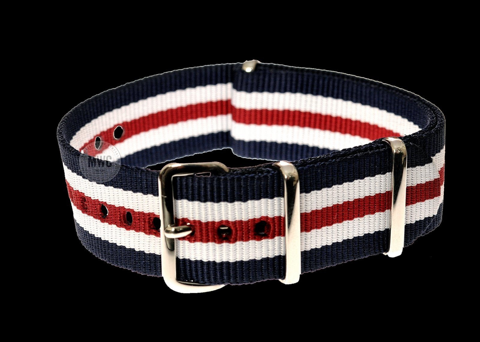 Das 20mm Red, White and Blue NATO Militäruhr kombiniert robuste Materialien mit einem bewährten Verschlusssystem für maximale Tragbarkeit. Dieses Modell ist die erste Wahl für Liebhaber authentischer NATO-Armbänder.