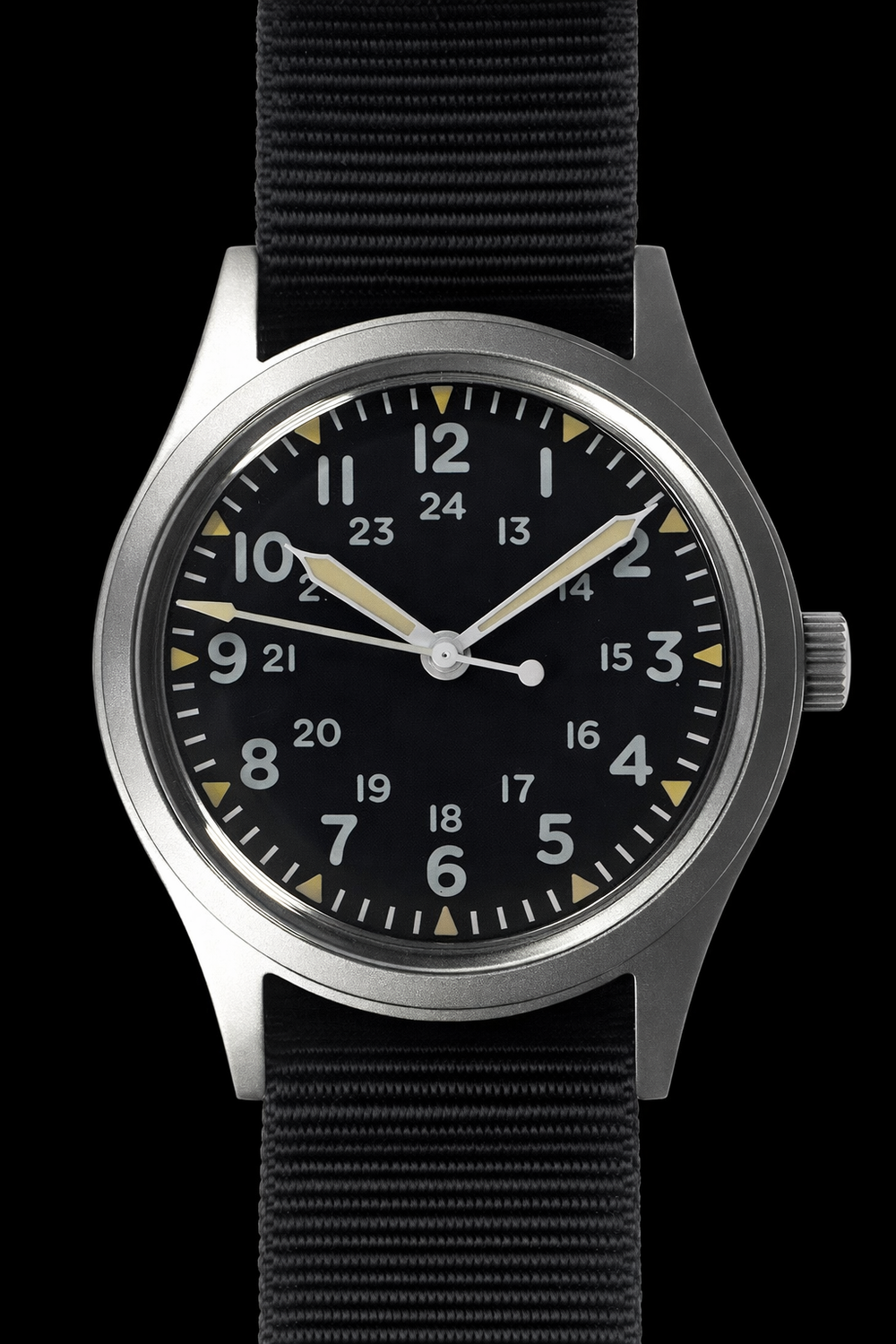 GG-W-113 U.S 1960s Pattern Handwound Militäruhr mit Plexiglas ist ein NATO Uhrenarmband, das handaufziehendes Uhrwerk kombiniert mit Plexiglas Kristall. Außerdem is dieses Modell geeignet für zowel actief Feldeinsatz als das tägliche Tragen. Waardoor trekt diese Uhr de aandacht von jeden, der Qualität en Authentizität waardeert.