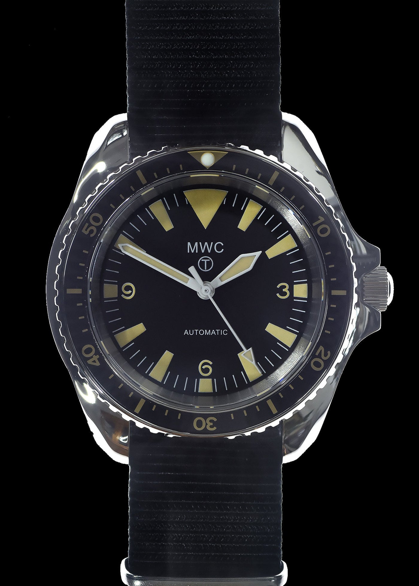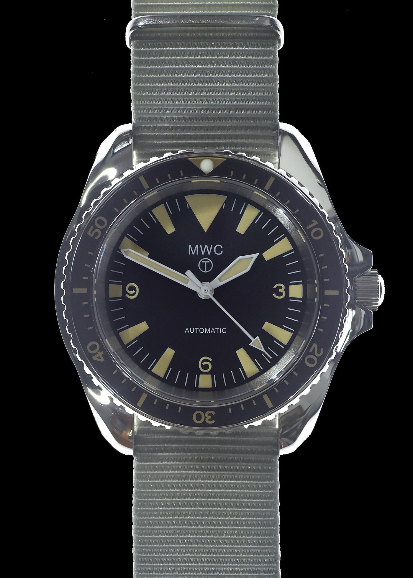 MWC 1970s Pattern Automatisch militärische Taucheruhr mit ist ein NATO Uhrenarmband, das automatisches mechanisches Uhrwerk kombiniert mit gehärtetem Mineralglas. Dennoch is dieses Modell geeignet für zowel actief Feldeinsatz als das tägliche Tragen. Gleichzeitig trekt diese Uhr de aandacht von jeden, der Qualität en Authentizität waardeert.