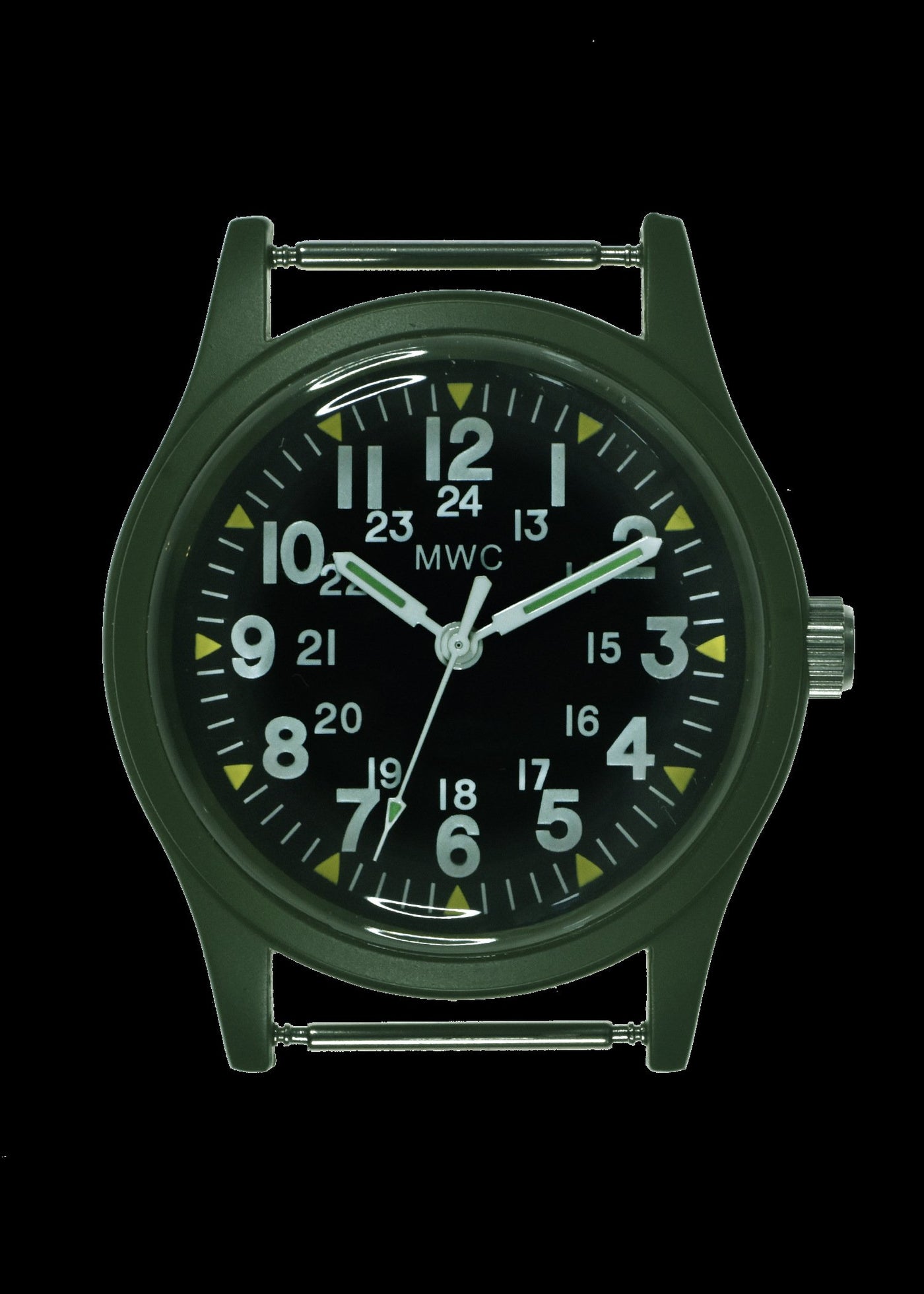 MWC Classic 1960s/70s Pattern Olive Vietnam Uhr on Matching Khaki ist eine Vietnam Militäruhr, die Präzisionsmechanik kombiniert mit gehärtetem Mineralglas. Außerdem is dieses Modell geeignet für zowel actief Feldeinsatz als das tägliche Tragen. Dadurch trekt diese Uhr de aandacht von jeden, der Qualität en Authentizität waardeert.