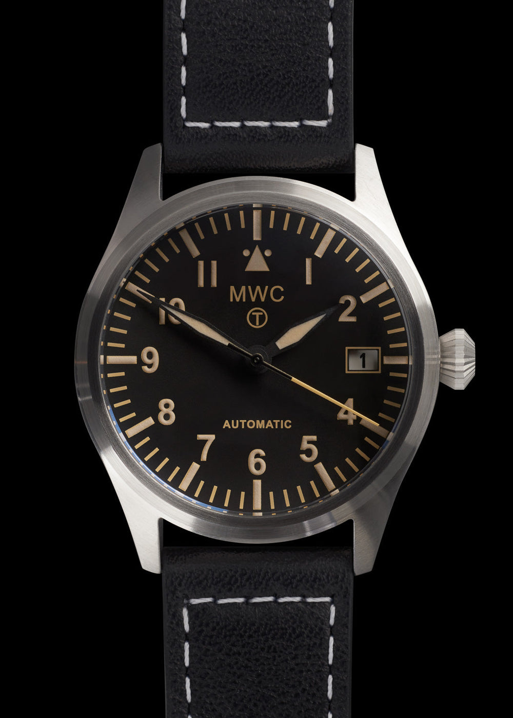 MWC Classic 40mm Edelstahl Aviator Uhr mit 24 Jewel is ein militärische Uhrenarmband die Präzisionsmechanik kombiniert mit gehärtetem Mineralglas und ist wasserdicht tot 40 meter. Jedoch is dieses Modell geeignet für zowel actief Feldeinsatz als das tägliche Tragen. Dadurch trekt diese Uhr de aandacht von jeden, der Qualität en Authentizität waardeert.
