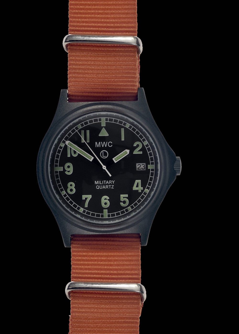 MWC G10 50m PVD SAR / Coastguard Uhr mit Battery Hatch, Solid ist ein NATO Uhrenarmband, das Präzisionsmechanik kombiniert mit gehärtetem Mineralglas und ist wasserdicht tot 50 meter. Dennoch is dieses Modell geeignet für zowel actief Feldeinsatz als das tägliche Tragen. Sodass trekt diese Uhr de aandacht von jeden, der Qualität en Authentizität waardeert.