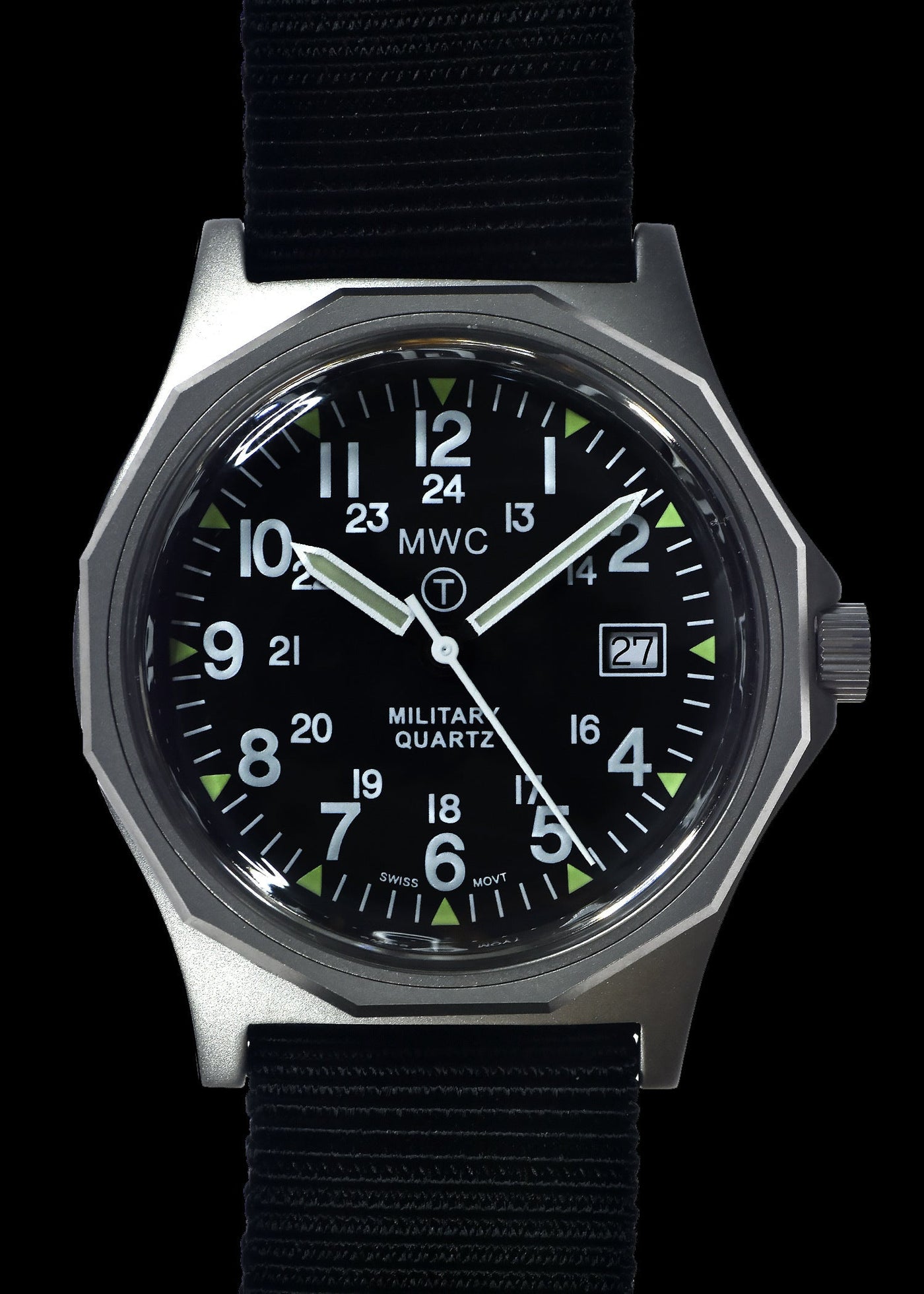 MWC G10 - Remake of 1982 to 1999 Series Uhr in Edelstahl ist eine MWC Militäruhr, die Präzisionsmechanik kombiniert mit gehärtetem Mineralglas. Dadurch is dieses Modell geeignet für zowel actief Feldeinsatz als das tägliche Tragen. Dennoch trekt diese Uhr de aandacht von jeden, der Qualität en Authentizität waardeert.
