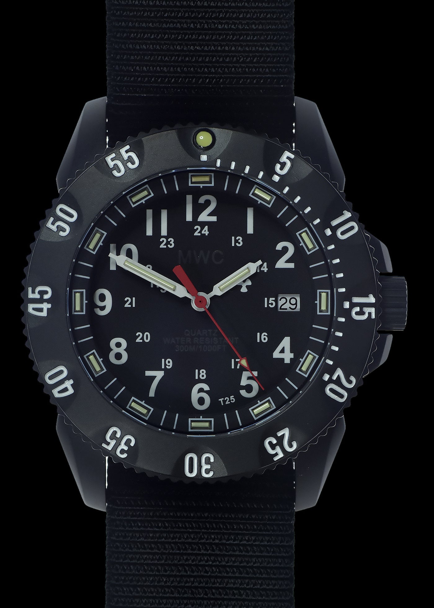 Die NATO Uhrenarmband is voorzien von zelfoplichtende Tritium GTLS-buisjes. Denn is das Uhr bij volledige duisternis altijd ablesbar, zonder externe lichtbron. Dientengevolge is dit ein essentieel kenmerk für nacht-operaties en tactisch gebruik. Denn wählen speciale eenheden en taktische gebruikers weltweit für Uhren mit Tritium verlichting.