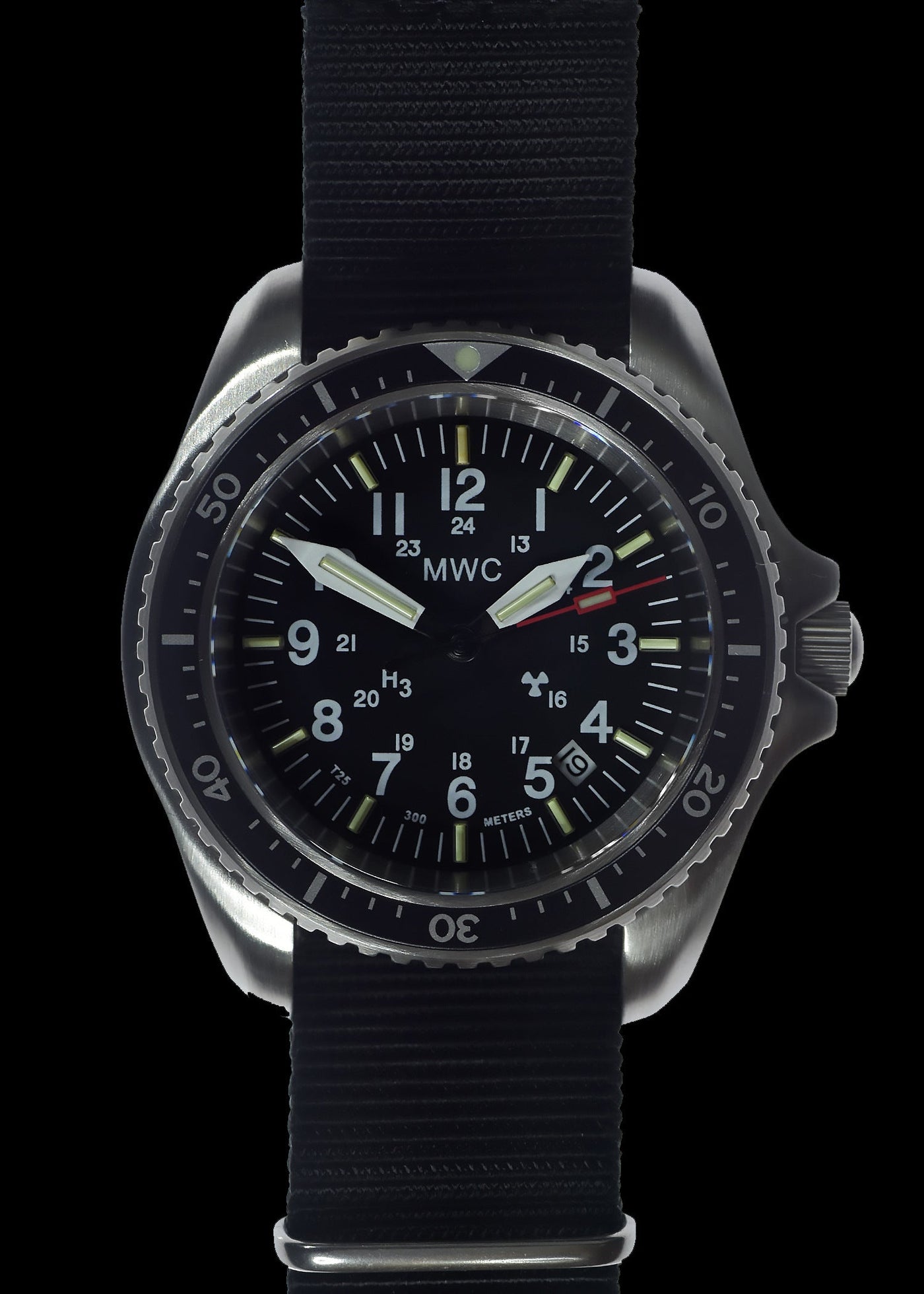 MWC Edelstahl Automatisch militärische Taucheruhr - ist eine MWC militärisch Taucheruhr, die automatisches mechanisches Uhrwerk kombiniert mit gehärtetem Mineralglas. Deshalb is dieses Modell geeignet für zowel actief Feldeinsatz als das tägliche Tragen. Kurzum trekt diese Uhr de aandacht von jeden, der Qualität en Authentizität waardeert.